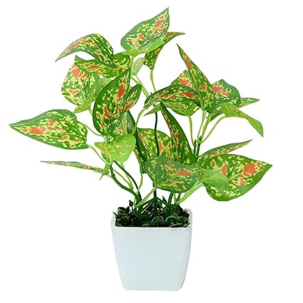 Decorative Artificial Green Leaves Plant Like Fake Epipremnum Aureum With Vase Home Decor