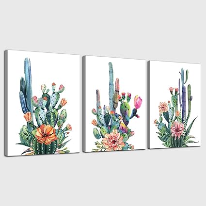 Wall Art For Living Room Canvas Prints Artwork Bathroom Wall Decor Simple Life Green Plants Cactus Picture Watercolor Painting 3 Pieces Kitchen