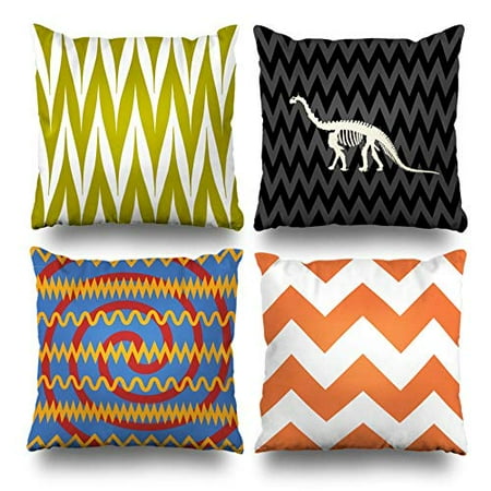 Sufam Set Of 4 Pillow Cases Tribal Zigzag Green Blue Orange Chevron Series Garden Car Nice Throw Pillowcase Cover Cushion Case Home Decor 18x18 Inch