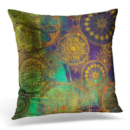 Arhome Colorful Circle Damask Floral Grunge Pattern In Gold Orange Green Blue And Violet Colors Painting Pillows Case 20x20 Inches Home Decor Sofa