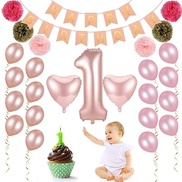 Suzzam 1st Birthday Decorations For Girl Baby 1st Birthday Party Suppiles With Happy Birthday Banner Paper Tissue Pompoms Kits 20 Pcs Birthday
