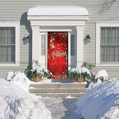 Victory Corps Outdoor Christmas Holiday Front Door Banner Cover Mural Decoration Christmas Front Door Banner Decor Ornaments Merry Christmas