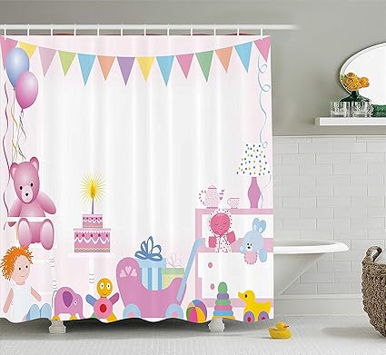 Msgdf Birthday Decorations For Kids Shower Curtain Baby