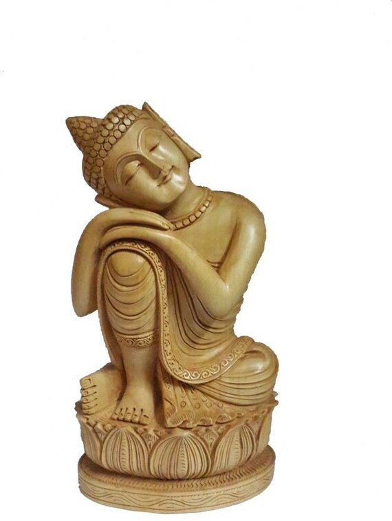 Lord Buddha Home Decoration Sleeping Buddha Wooden Craved Thinking Thai Buddha Idol Decorative Showpiece 21 Cm Wooden Brown