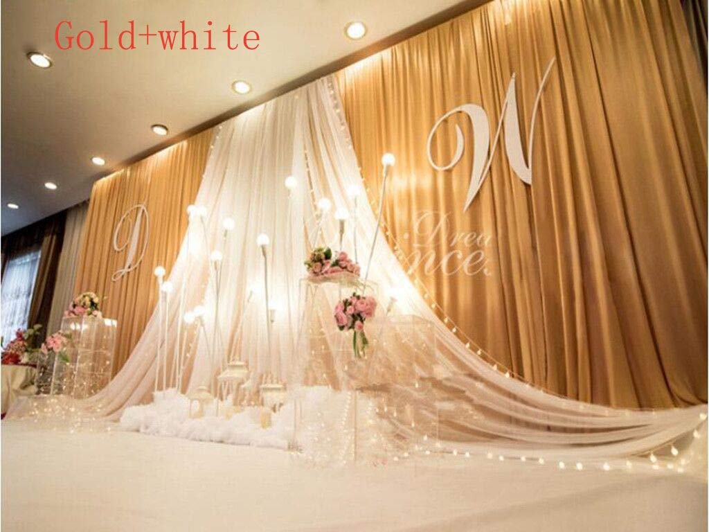Eyestar 20x10ft Luxury Wedding Stage Silk Backdrop Background Curtains With Beauty Yarn Gauze Decoration Gold White