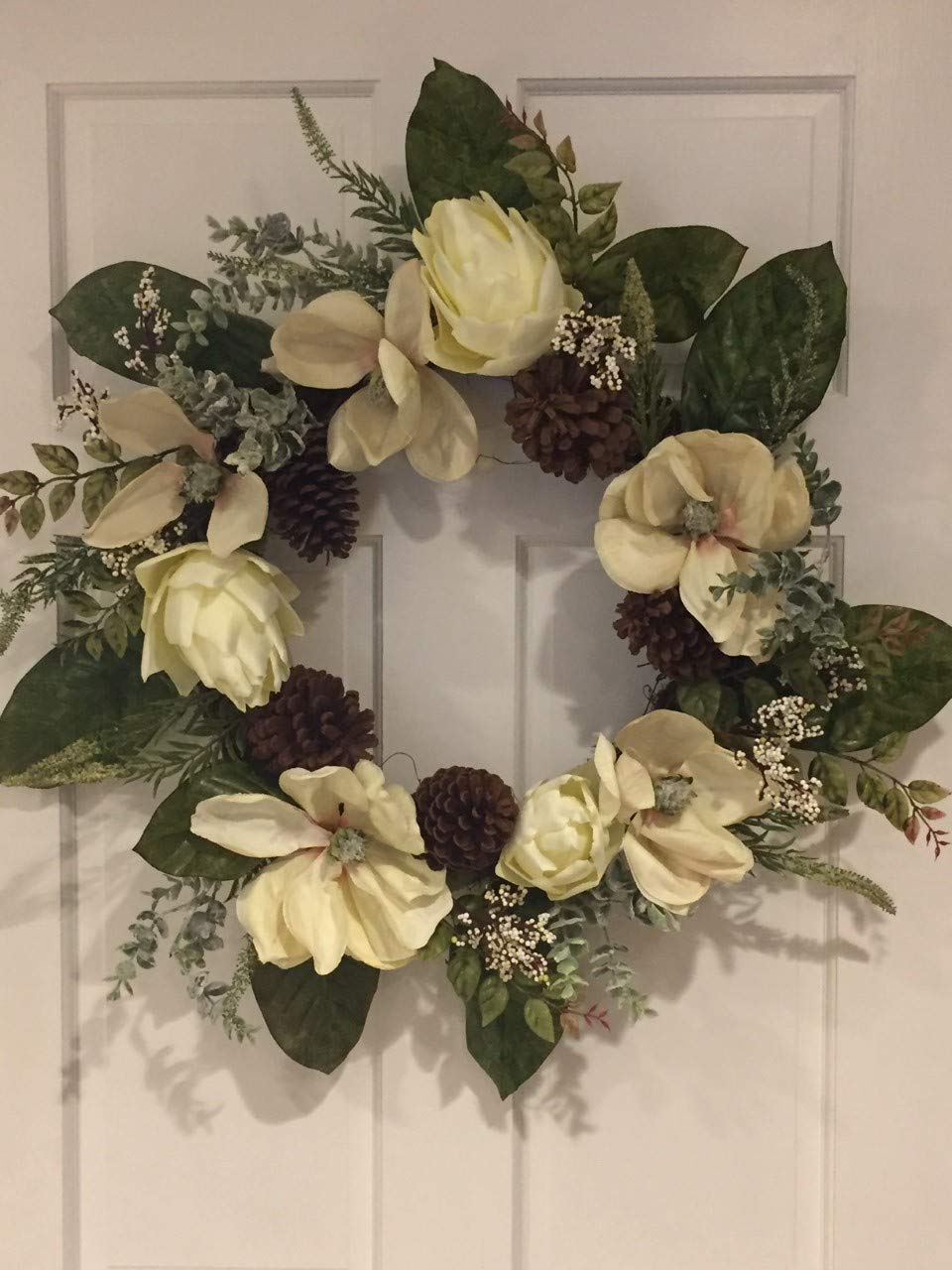 Imperial Magnolia Wreath Christmas 22 Inch Front Door Wreath