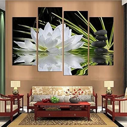 Amazon Com Beautiful White Lotus Flower Painting Canvas