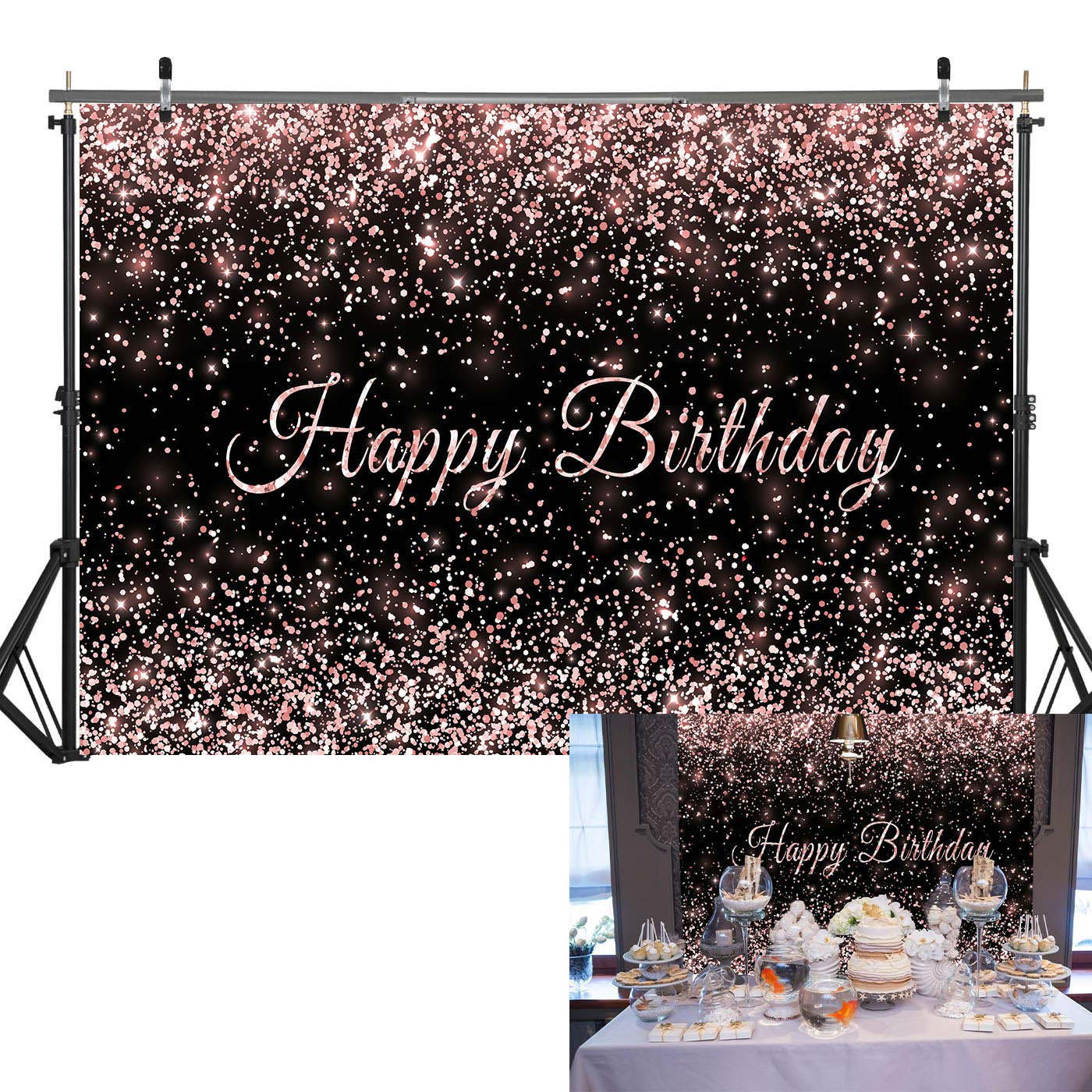 Haboke 7x5ft Durable Fabric Happy Birthday Backdrop Pink And Black Shiny Gold Dot Glamour Sparkle Sweet Photography Background For Kids Adults