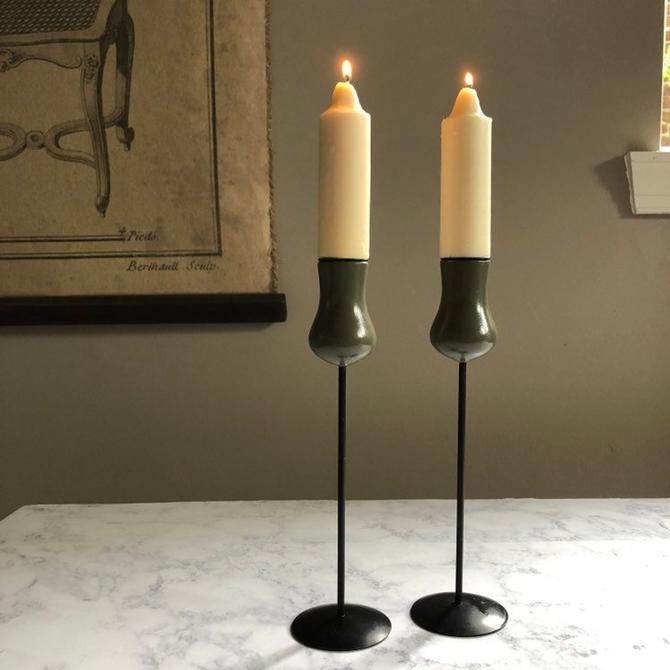 Vintage Lonborg Denmark Candleholders Laurids Lonborg Mid Century Modern Danish Candlesticks Olive Green Home Decor Painted Wood Metal By