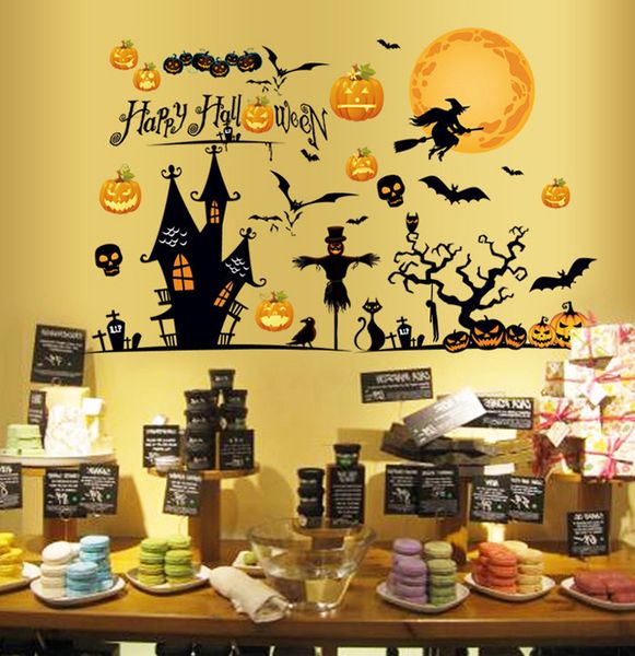Us 7 18 15 Off Witch Ghost Bats Castle Wall Stickers Happy Halloween Home Decorations Festival Decals Mural Art Posters Kids Gift In Wall Stickers