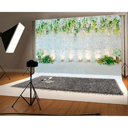 Hellodecor Polyester 7x5ft Backdrop Photography Background Flower Wall Green Leaves Wedding Decoration Holiday Party Birthday Bride Girls Friends