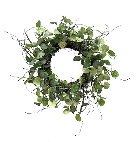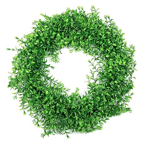 Awpeye 17 Artificial Green Leaves Wreath Spring Wreaths For Front Door Home Office Wall Wedding Decor
