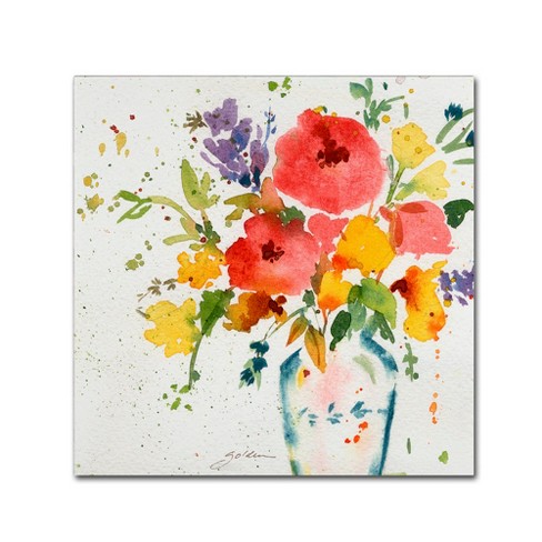 White Vase With Bright Flowers By Sheila Golden Ready To Hang Canvas Wall Art