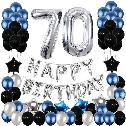 70th Birthday Decorations 70 Birthday Balloons Party Supplies Happy Birthday Banner Blue And Silver Black For Women Men 81pcs