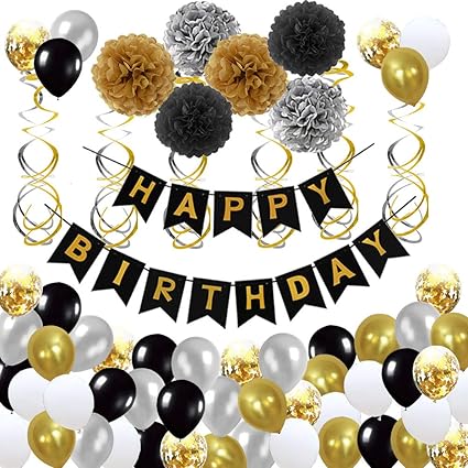 Happy Birthday Decorations For Men Women Boys Girls Hulaso Black And Gold Birthday Party Supplies For 16th 18th 21st 30th 50th 60th With Happy