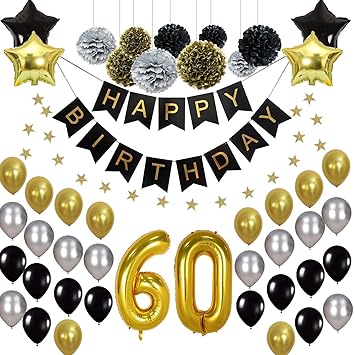 60th Happy Birthday Party Supplies Kit 47pcs Silver Black And Gold 60th Birthday Decorations Helium