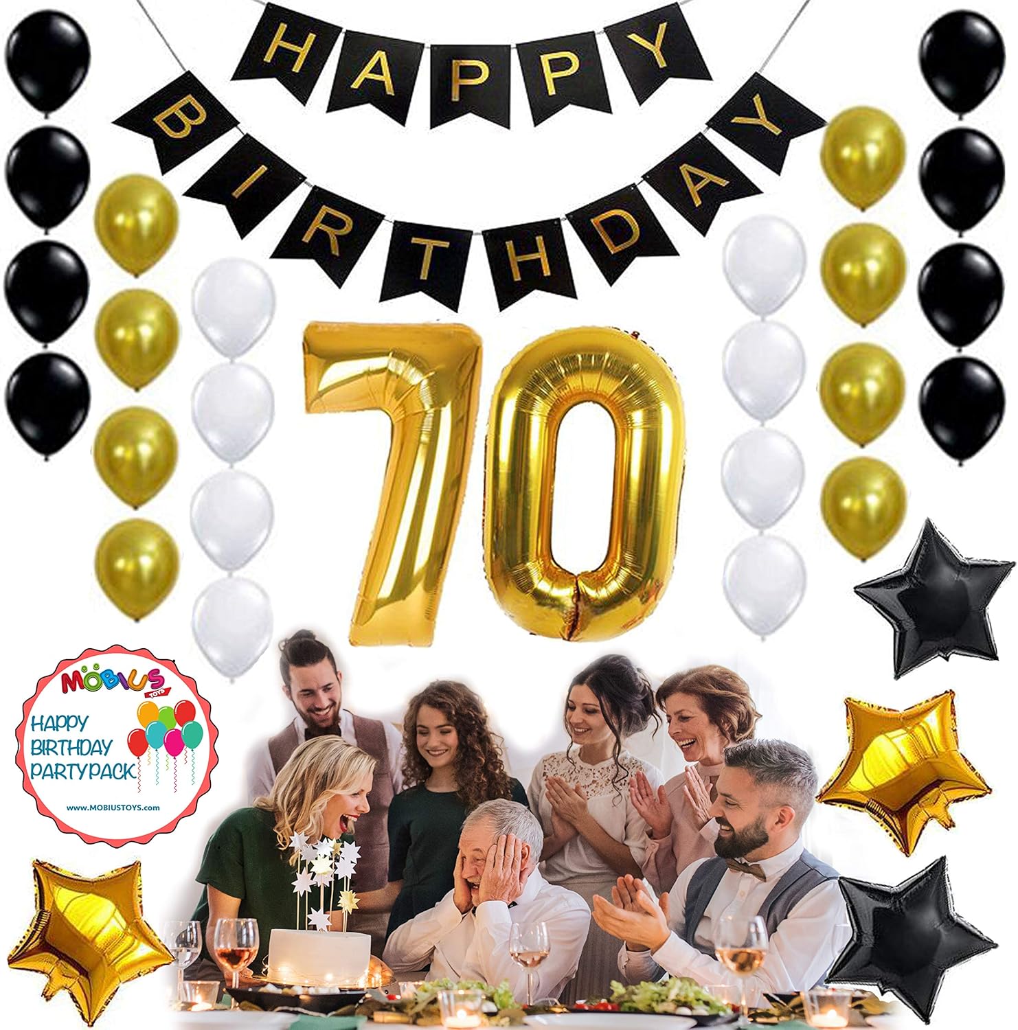 70th Birthday Party Decorations Kit 31pcs White Black Gold Helium Balloons With Banner 70 Th Birthday Decorations Party Supplies For Men